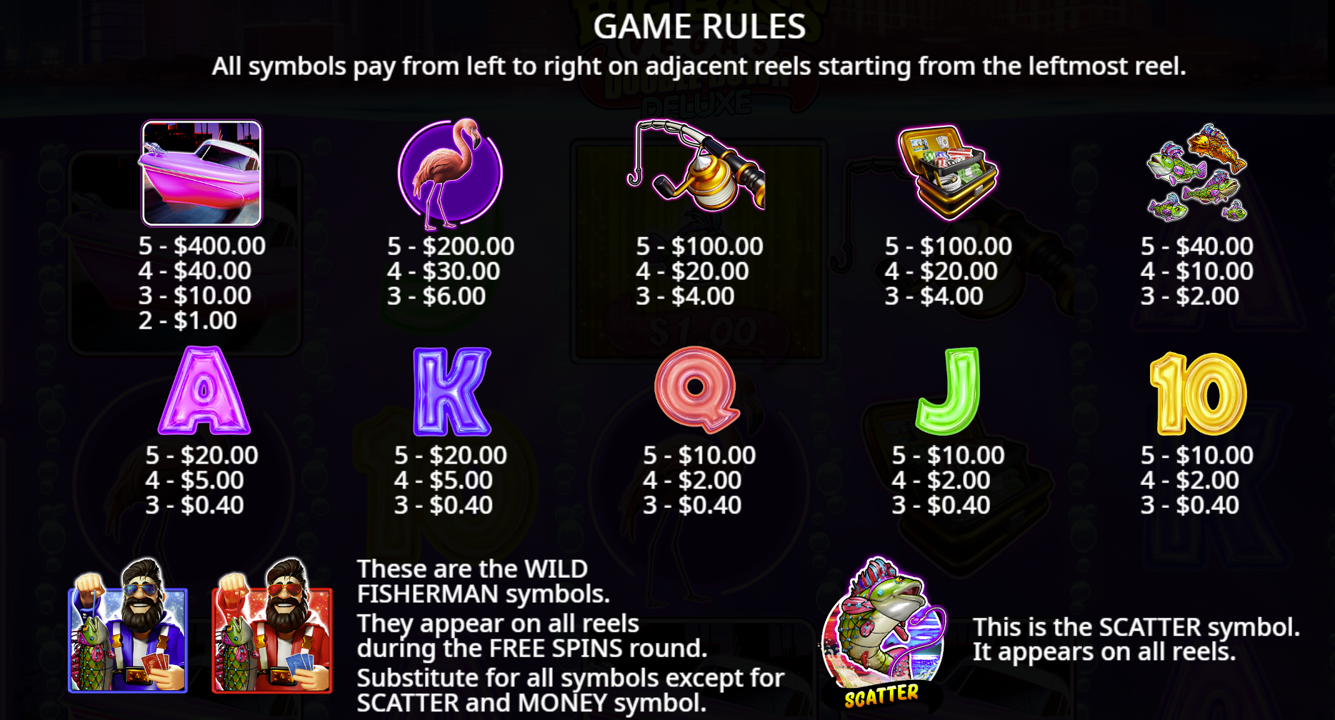 • Enhanced Sticky Fisherman (in Free Spins): Like in Splash, the Fisherman Wild becomes sticky on reel 5 for the duration of the free spins, guaranteeing the collection of all Money Symbols that land. Each collection still awards +1 additional free spin.